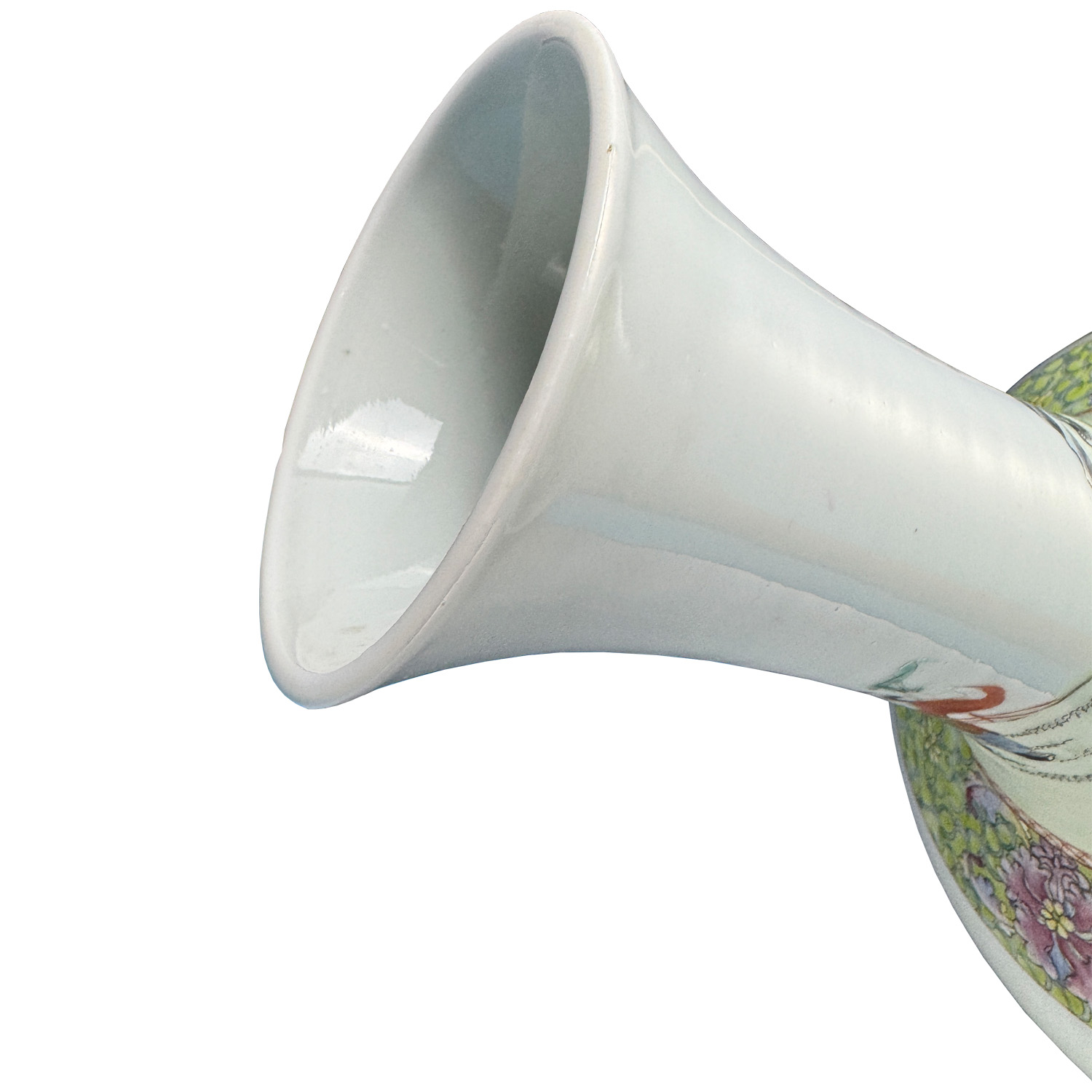 Bình củ tỏi miệng loe, dáng đẹp vẽ người. Trôn hiệu đề Đại Thanh Quang Tự Niên Chế trong 2 vòng xanh.